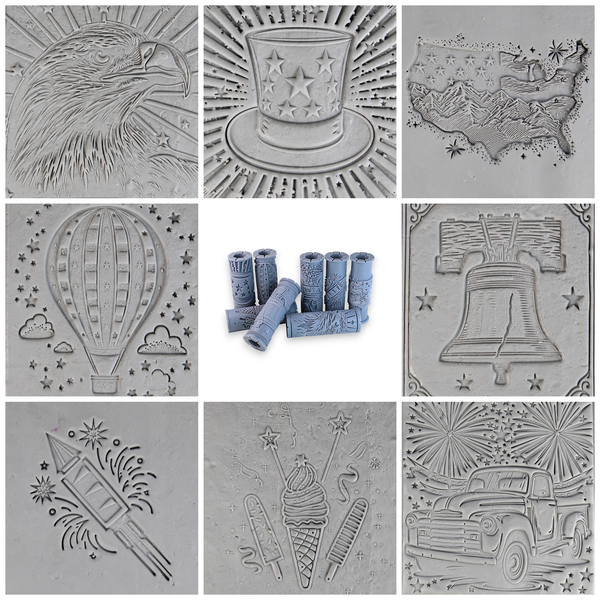America Clay Texture Roller Set #01 - Stars & Stripes and Americana Icons (4")