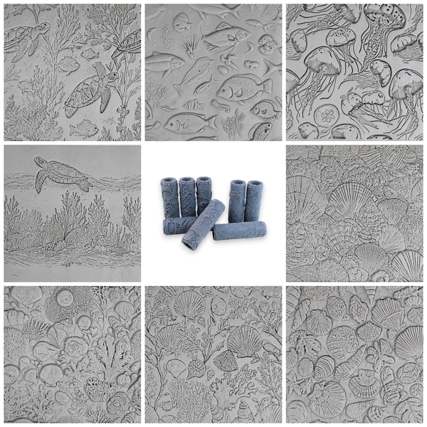 Seamless Ocean Clay Texture Roller Set #01 - Coastal Creatures & Shells and Seafloor (4")