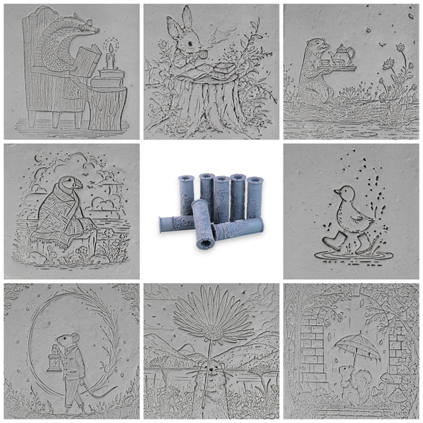 Storybook Clay Texture Roller Set #01 - Cozy Critters and Windy Weather (4")