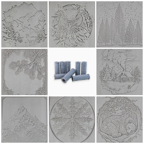 Winter Clay Texture Roller Set #01 - Winter Woods & Frosty Retreat (4")